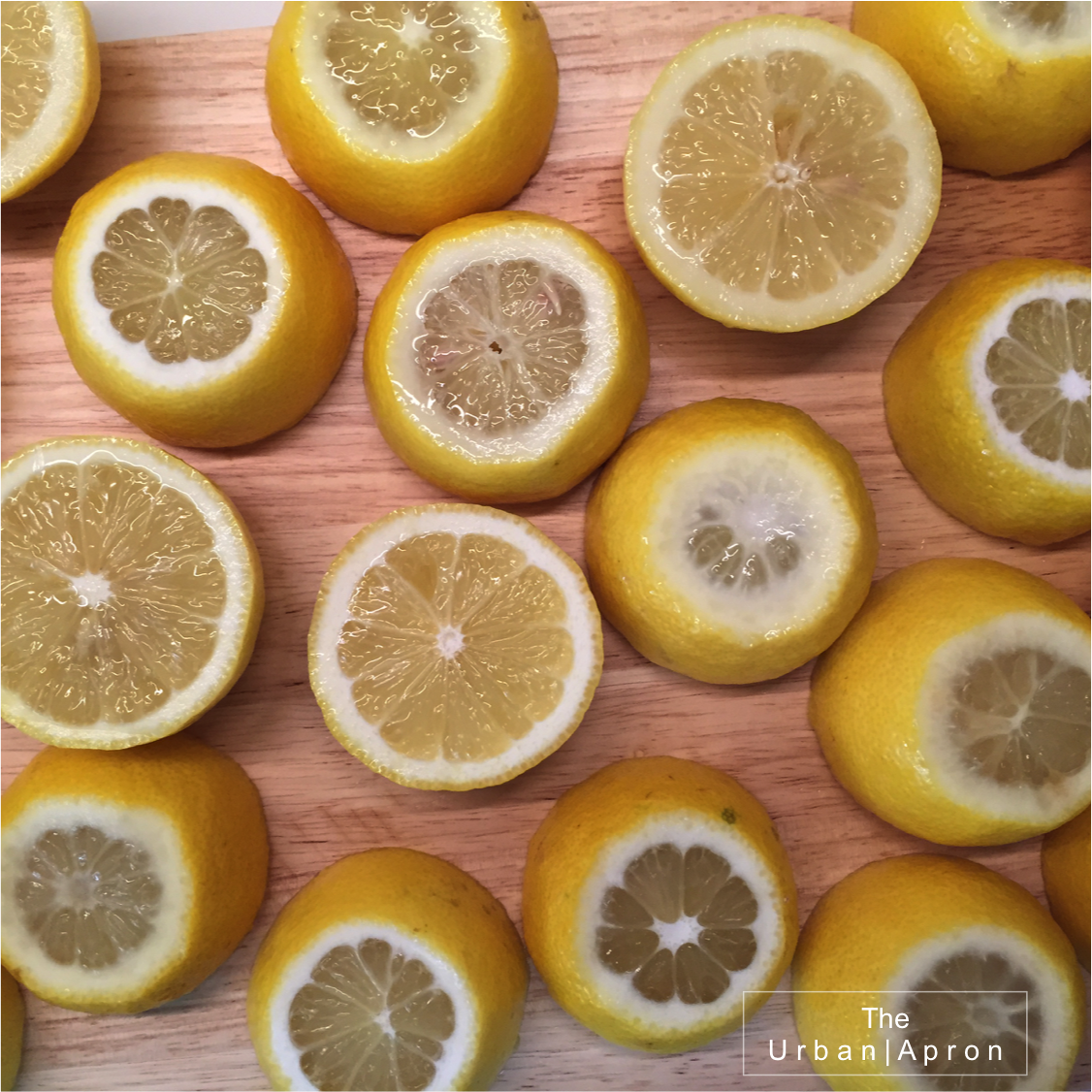 1. Cut Lemons’ top and bottom. Then cut them in halves and put them in a bucket.