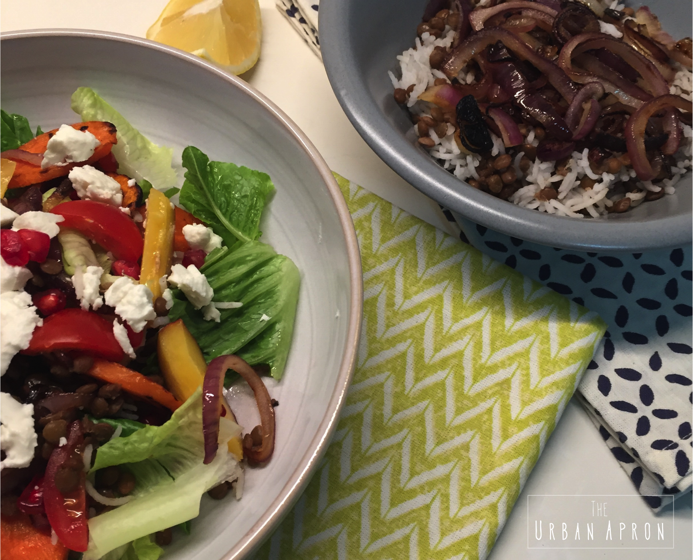 I tossed some grilled and raw vegetables on the Moudardara plate, some feta cheese and lemon-oil dressing: it turned out fulfilling, refreshing and delicious for dinner or a quick lunch at work!