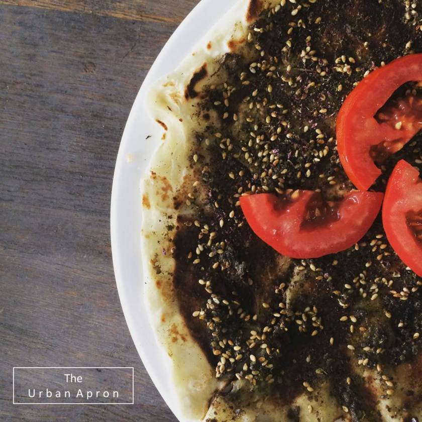 Mankoushe how I miss you! Sometimes it gets to me like a strike, the smell of dough and fresh thyme would trigger my senses like if I was walking by a “fern” in the street (communal oven: referred to the location where the mankoushe is baked). Mankoushe is a typical Lebanese dough similar to a flatbread or pita, it is usually topped with herbs, cheese or meat. You can have it folded, wrapped or open at breakfast or lunch since it would make you feel full & satisfied. You can find it in the “fern” (communal oven) in almost every street at a very cheap price (1$). Yes, it is street food and my favorite… 🙂 When we were kids, my grandma used to take me with my brother to the “fern” every time we had a sleepover, usually early Sunday mornings before the family lunch gathering. Over the years, I used to have the Mankoushe wrap with Zaatar (thyme blend) and vegetables (tomato, cucumber, mint & olives) at school every Fridy until a fern/restaurant opened next to my school and we went over after school …